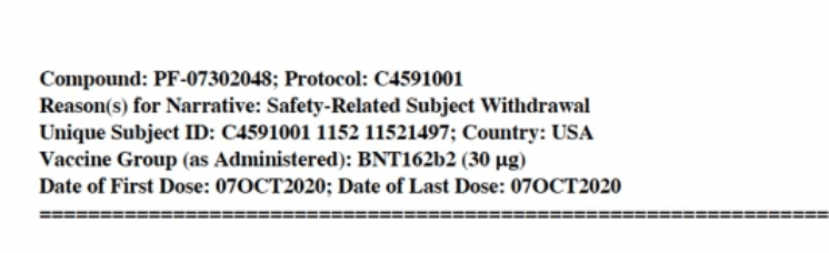 Во-вторых, этот человек был получателем вакцины. Тогда возникают вопросы: почему его смерть не была включена в статью NEJM и почему его смерть даже не была классифицирована как «смерть» в оригинальном документе Pfizer?