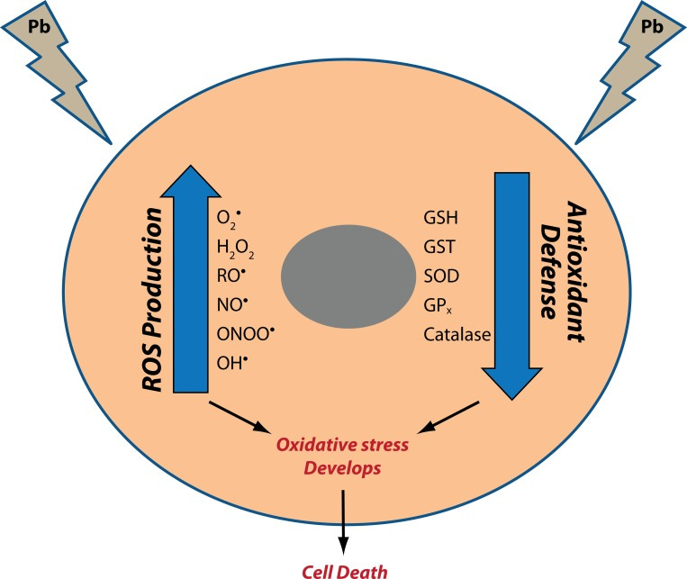 Окислительный стресс представляет собой дисбаланс между производством свободных радикалов и способностью биологической системы легко детоксицировать реактивные промежуточные продукты или восстанавливать возникшие повреждения (Flora, 2011). Сообщалось, что он является основным механизмом токсичности, вызванной свинцом.