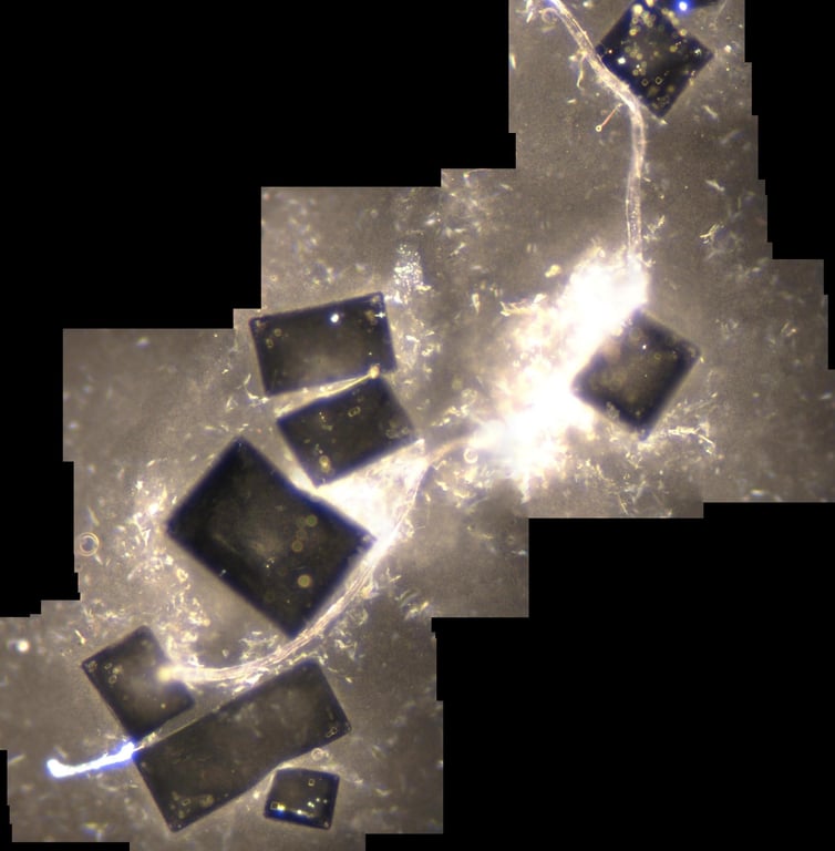 Характерные структуры включают квадратные и прямоугольные формы, а также волокна или “ленты”. Они, как правило, вырастают до очень больших размеров по микроскопическим меркам.