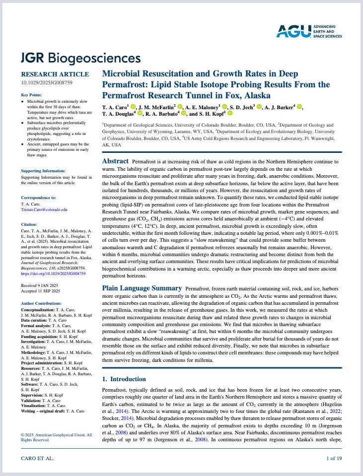 Исследование под названием «Микробная реанимация и темпы роста в глубоких слоях вечной мерзлоты: результаты зондирования стабильных липидных изотопов из исследовательского туннеля вечной мерзлоты в Фоксе, Аляска» (DOI: 10.1029/2025JG008759) финансировалось и проводилось совместно с Исследовательской и инженерной лабораторией холодных регионов армии США (CRREL) в Форт-Уэйнрайте, штат Аляска.